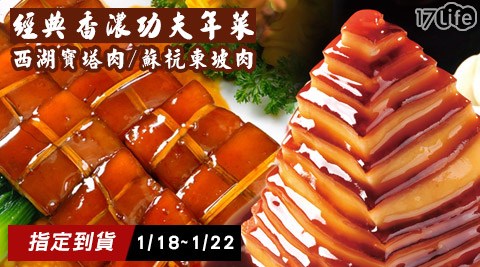 平均每包最低只要488元起(含運)即可享有【老爸ㄟ廚房】經典香濃功夫年菜1包/2包/3包/5包,菜色:西湖寶塔肉(785g±10%/包)/蘇杭東坡肉(900g±5%/包)?